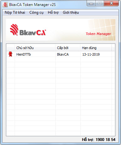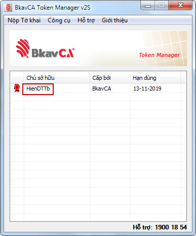 Trường hợp A: USB Token của bạn đã được cập nhật thông tin người sử dụng