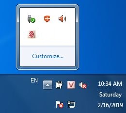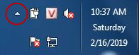 ở góc dưới bên phải màn hình, bạn bấm chuột vào hình mũi tên (ảnh trái bên dưới). Nếu BTM đã được cài, bạn sẽ thấy icon