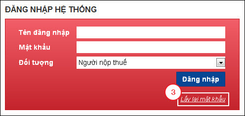 Bước 4: Trên giao diện ĐĂNG NHẬP HỆ THỐNG, bấm Lấy lại mật khẩu (3).
